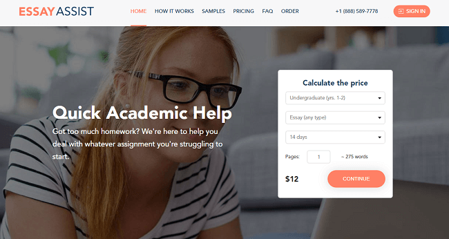 Essayassist.com is an online writing service that provides custom papers for students. The company is registered in Cyprus and has been on the market for 14 years. Unfortunately, the owner of Essayassist.com is unknown. However, this fact did not stop me. That is why I decided to craft my Essayassist.com review and tell you the truth.