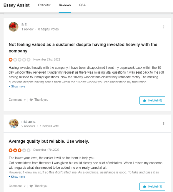 A quick search on popular review websites such as Reddit, Trustpilot, Sitejabber, BBB.org, and Quora reveals that Essayassist.com does not have the best reputation. For example, many students complain about the quality of papers, missed deadlines, and poor customer service. In addition, some reviews suggest that the company hires non-native English speakers who struggle with grammar and formatting. Others mention that the company's refund policy is complicated and often not honored. Overall, I'm unsurprised to find many negative and mixed Essayassist.com reviews. But let's also check other aspects.