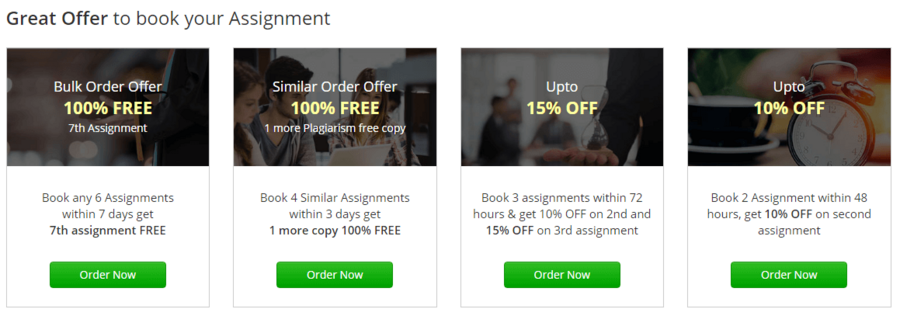 Moreover, the service offers a wide range of discounts for your future orders. You can save up to 10% for the second order, up to 15% for the third order, and get a 7th assignment free when placing a bulk order.