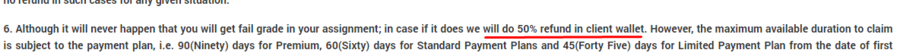 The guarantees offered by the platform are not customer-oriented. There is no opportunity to get your money back in case you are not satisfied with your essay. You can only get a maximum 50% refund in your client wallet.