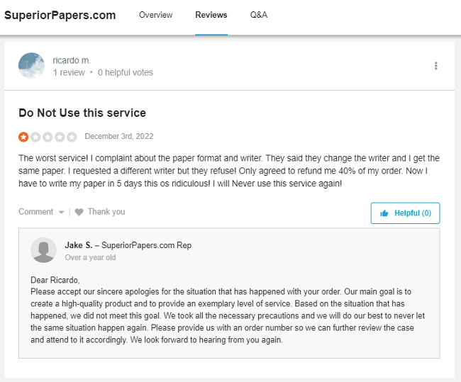 | Is Superiorpapers.com trustworthy? | No. You should not trust this writing service. |