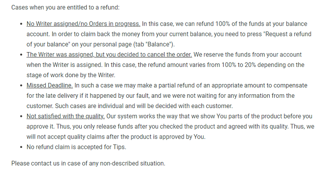 Revision and refund terms aren’t student-friendly at all. For example, you can only request revisions before releasing the final payment. After that, you won’t get any revisions or refunds, even if you’re unhappy with the writing quality. Even late delivery does not guarantee you a partial refund. So overall, the WritingCheap guarantees don’t guarantee anything.